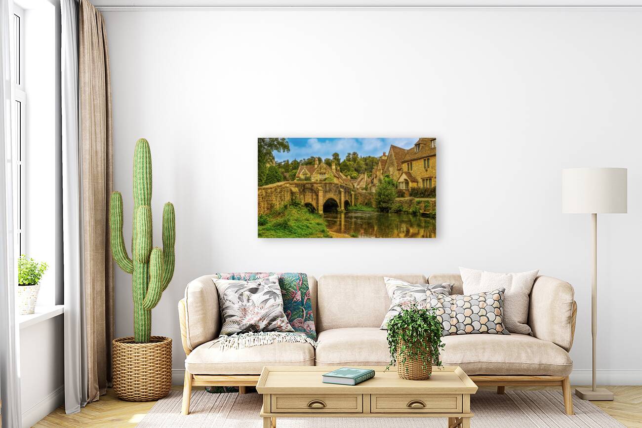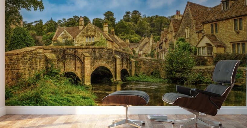Discover the tranquil charm of Castle Combe from a picturesque vantage point along the riverbank, just before the quaint stone bridge. This captivatin...[+]