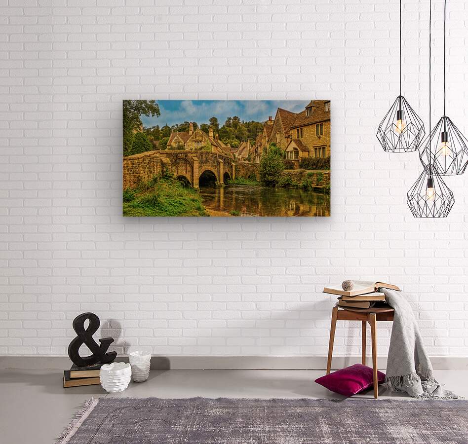 Tranquil Charm: Riverside Glimpse of Castle Combe  Wood print