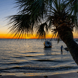 GULF BREEZE PALM TREE AND SAILBOAT SUNSET