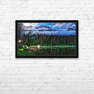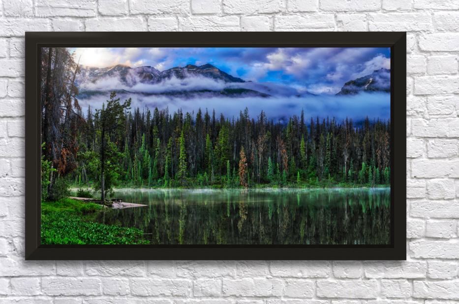 Misty Tranquility: Honeymoon Lakes Dawn Symphony. Picture Frame Printing
