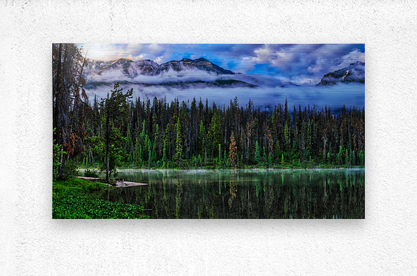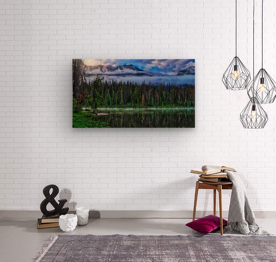 Misty Tranquility: Honeymoon Lakes Dawn Symphony. Wood print