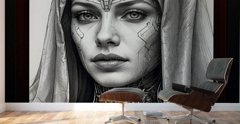Portrait Of A Codenite AI Concept Creation by Xzendor7; covered with a shroud that conceals most of her cybernetic implants.