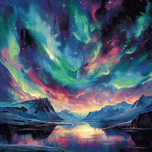 ABOUT THIS ARTWORK: LAKE AURORA BOREALIS NATURE LANDSCAPE MOUTAINS ST
