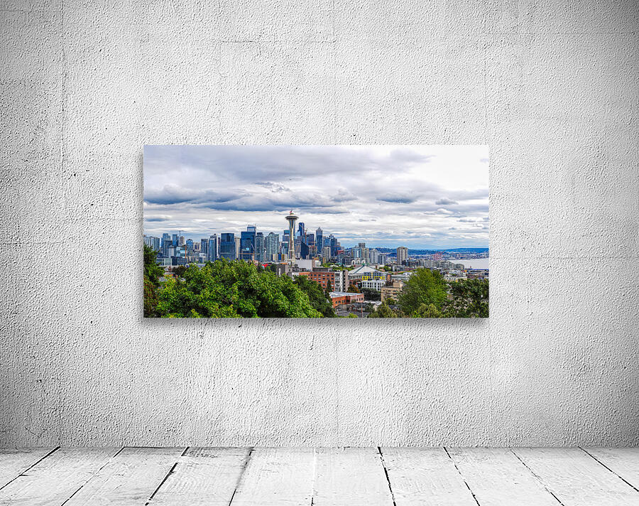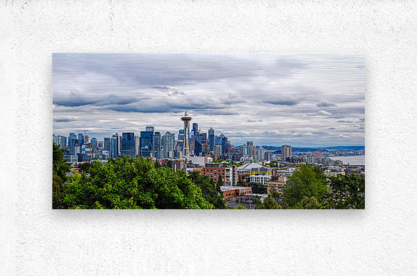Behold the metropolis of Seattle in all its grandeur, captured in stunning detail from the elevated vantage point of Kerry Park. Despite the overcast skies of a grey day, the city shines brightly. The ultra high resolution of this photograph reveals intricate architectural details, from the iconic Space Needle reaching towards the heavens to the sleek skyscrapers that define the city's silhouette. As you immerse yourself in the panoramic view, you can't help but be captivated by the dynamic energy and modern charm of Seattle, a city that seamlessly blends natural beauty with urban sophistication. This image serves as a testament to the enduring allure of the Emerald City, inviting viewers to marvel at its skyline symphony from the comfort of their own homes.