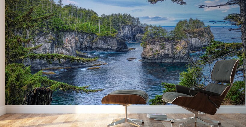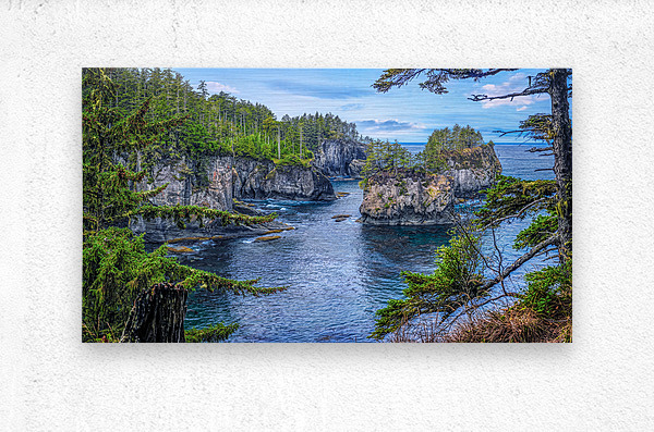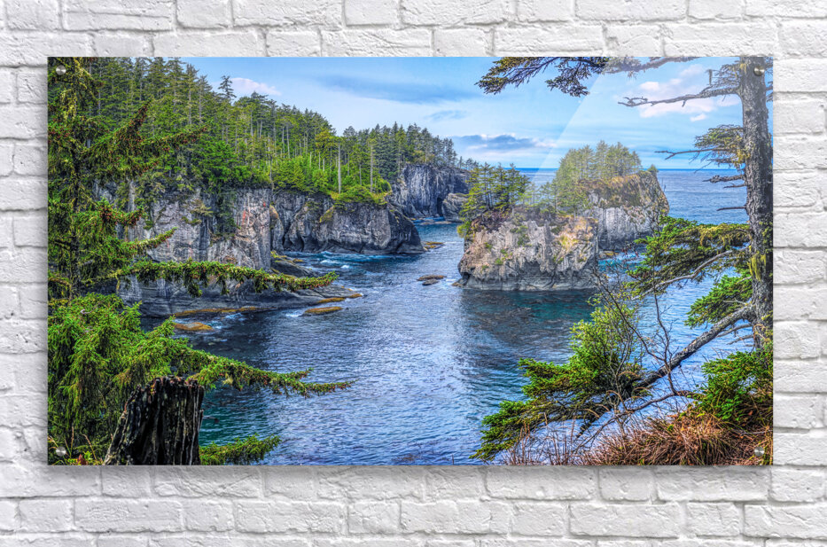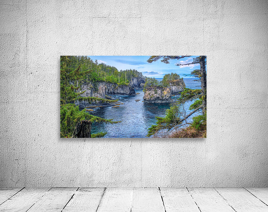 Journey along the Cape Flattery Trail and behold a scene reminiscent of a masterful painting, where the sky meets the sea in a mesmerizing display of coastal majesty. Against a backdrop of vivid blue skies, both dark and fluffy white clouds dance in harmony, casting ever-changing shadows upon the rugged coastline below. The panoramic vista, imbued with a painterly aesthetic, unfolds like a work of art, with each brushstroke of nature's hand adding depth and character to the scene. As you traverse the trail, the sheer beauty of the Pacific Northwest coastline captivates your senses, inviting you to lose yourself in the tranquility of this coastal paradise. Experience the awe-inspiring allure of Cape Flattery, where every view is a masterpiece waiting to be discovered in all its ultra high resolution glory.