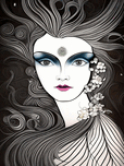 woman face art nouveau line art drawing vintage r Ravend Puzzle printing