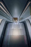 In keeping with the theme of the Dutch museum in Amsterdam, I found these simple lines of the escalator to be very beautiful. I've simplified my original photograph to stress the lines of the staircase into it's most beautiful lines. The basic colors are pink, aqua, grays and white.