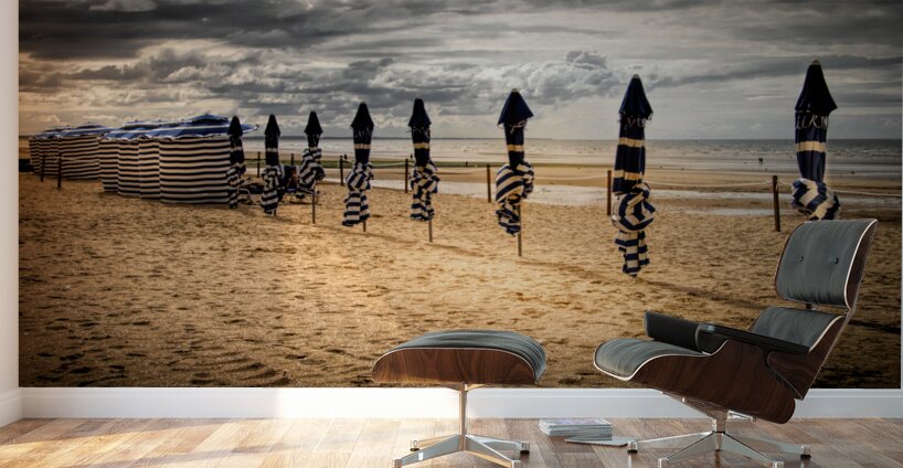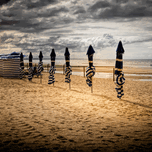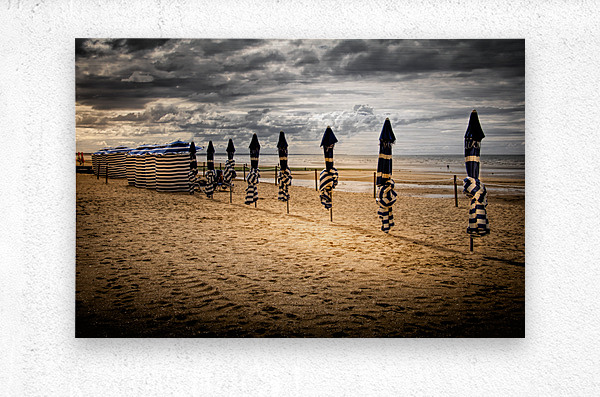 Built in 1907 to serve Cabourg flourishing aristocratic tourist population in summer heat, the Grand Hotel has been entertaining guests for more than a century. One of its most regular guest was the world-renowned French author, Marcel Proust who found rest and inspiration in contemplating the changing tides. Located in front of the Grand Hotel, along the English Channel in the Calvados region along the Dives River, on the Côte Fleurie (Flowery Coast). the stripped umbrellas seen here have been an icon alon the beach. This day the ominious clouds were hanging overhead seeming to be in sync with the direction of the closed up umbrellas. It was still early summer and learly evening, so the crowds were gone leaving just the umbrellas to decorate the beach. Modern Cabourg began in 1853 with the arrival of two Paris financiers in search of a new site for a luxurious watering-place. The railway age had made the Normandy coast a favorite spot for holiday-makers. Dieppe, Trouville and Deauville to the east had already been discovered, but here the adventurers found a virgin expanse of barren dunes and level sea-sands ripe for development. By the 1880's a city of villas and hotels had arisen, whose centre was the Grand Hotel, and whose radii were traced by a fan-work of avenues shaded with limes and Normandy poplars.