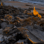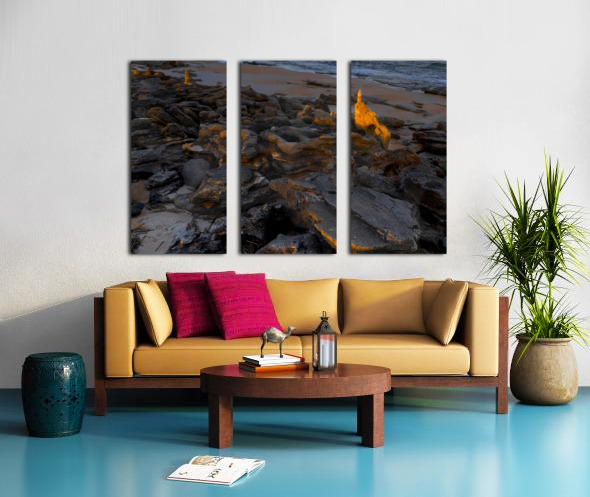 We had decided to stay in for the night, but I looked out the window of our camper and the lighting was beginning to capture my interest. If you are a photographer you know the lighting I am talking about, so off we headed to my favorite rocky coastline in Florida, between St. Augustine and Daytona, Palm Coast in winter. We had been here earlier in our trip when the winds were fierce. The orange lighting on some of the rocks made my day. This particular angle was caught by our drone not too far overhead.