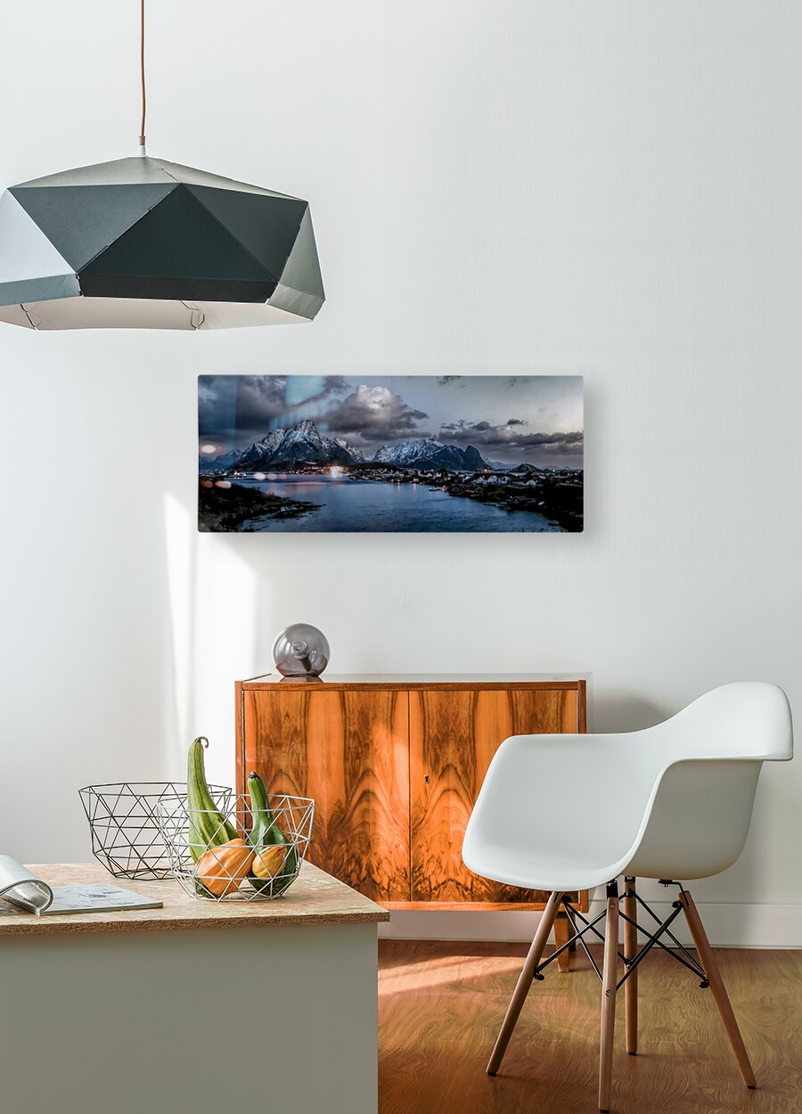 Reine Village Winter Landscape  Wood print