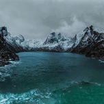 Imagine a crystal-clear fjord on the island of Moskenes, that reflects the snow-capped peaks that cradle it. This is the Diupfjorden, a haven of tranquility tucked away in the southern Lofoten Islands of Norway. In winter, the fjord transforms into a wonderland, where silence reigns and the only sounds are the sigh of the wind and the occasional crackle of ice. The sun, low in the sky, casts long shadows across the expanse, painting the scene in hues of aqua, gray, and lavender. The air is crisp and clean, invigorating with every breath. Look up, and you'll see Reinebringen, a majestic mountain that rises like a sentinel from the fjord's eastern shore. Its snow-covered slopes shimmer in the fading light, and its peak pierces the clouds, a beacon against the darkening sky. It's a place that will stay with you long after you've left, a memory etched in your heart like the frost on a winter windowpane.