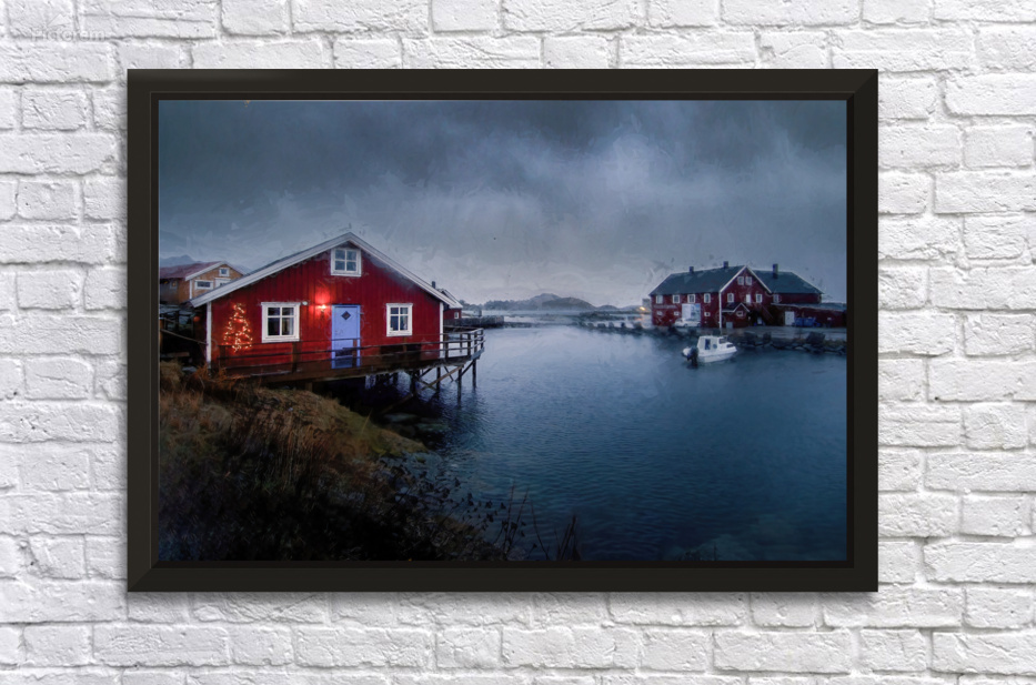 Lofoten Islands Christmas Red House Picture Frame Printing