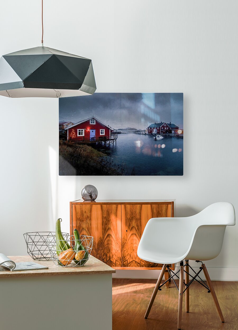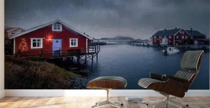 ABOUT THIS ARTWORK: LOFOTEN ISLANDS CHRISTMAS RED HOUSE