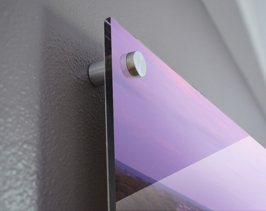 Printed to the edge - Ready to hang - provided with 4 premium polished aluminum stand off ( wall screws and mounting hardware provided )