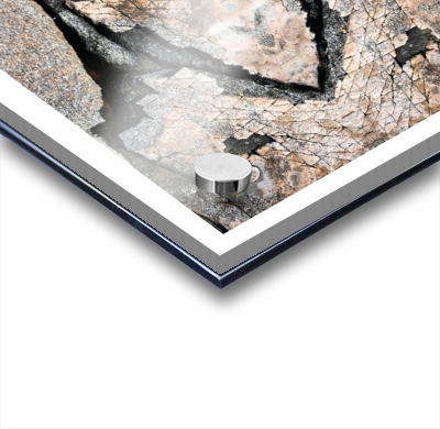 Printed to the edge - Ready to hang - provided with 4 premium polished aluminum stand off ( wall screws and mounting hardware provided )