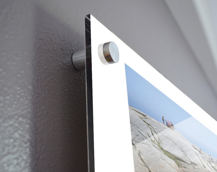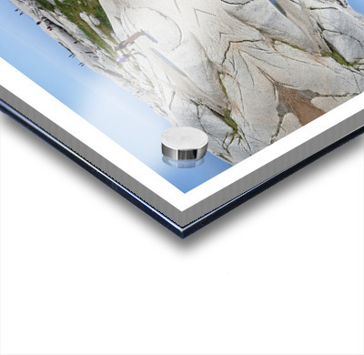 Printed to the edge - Ready to hang - provided with 4 premium polished aluminum stand off ( wall screws and mounting hardware provided )