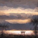 As the sun sets to end this day, the sunset apen glow reflected in the clouds over Hilton Head Island, SC create silhouettes of the nearby palm trees against the colorful sky and horizon. My photograph has been edited in impressionist style.