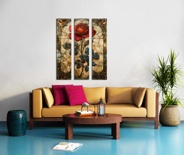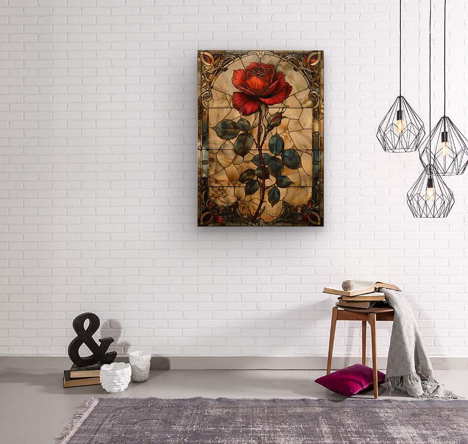 Crimson Elegance Stained Glass Red Rose Picture Frame Printing