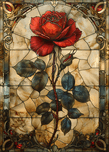 CRIMSON ELEGANCE STAINED GLASS RED ROSE