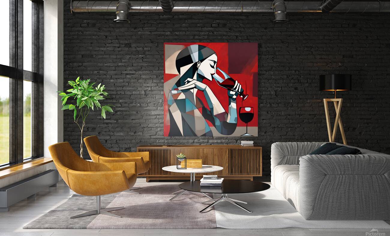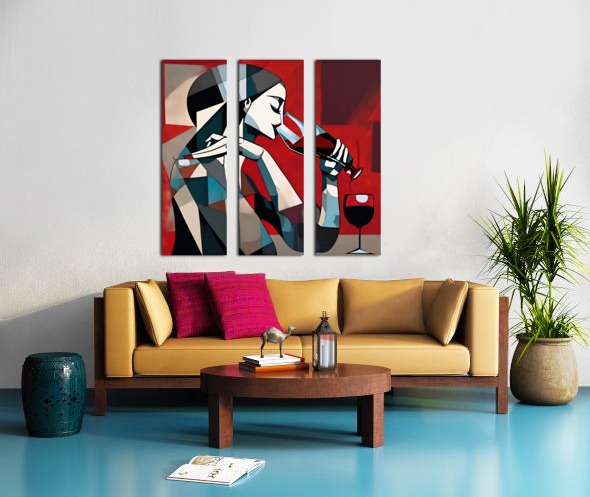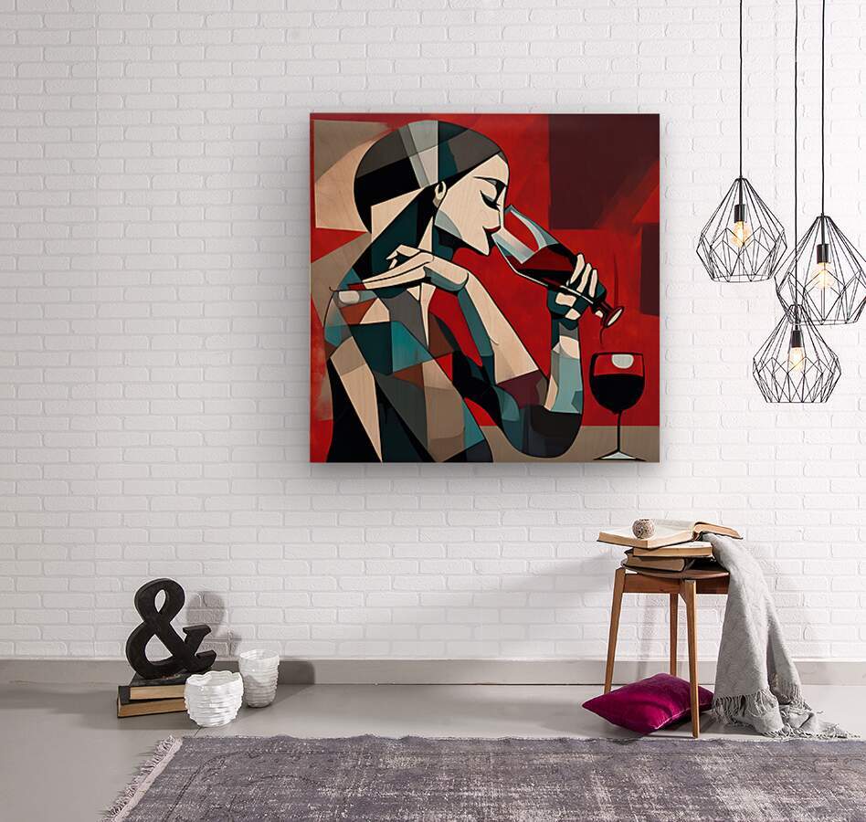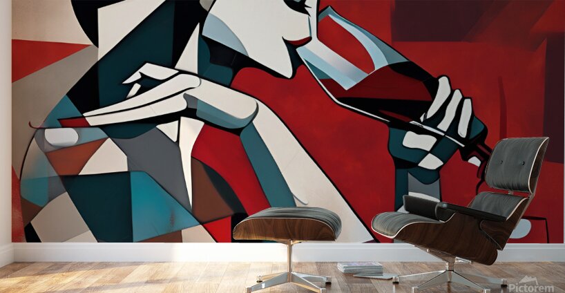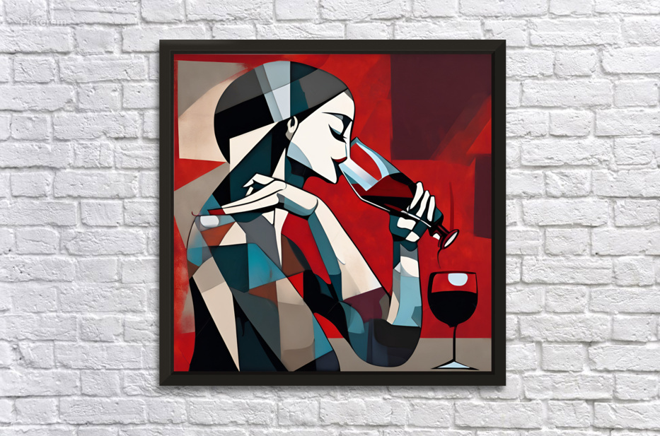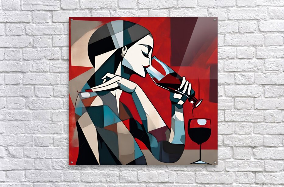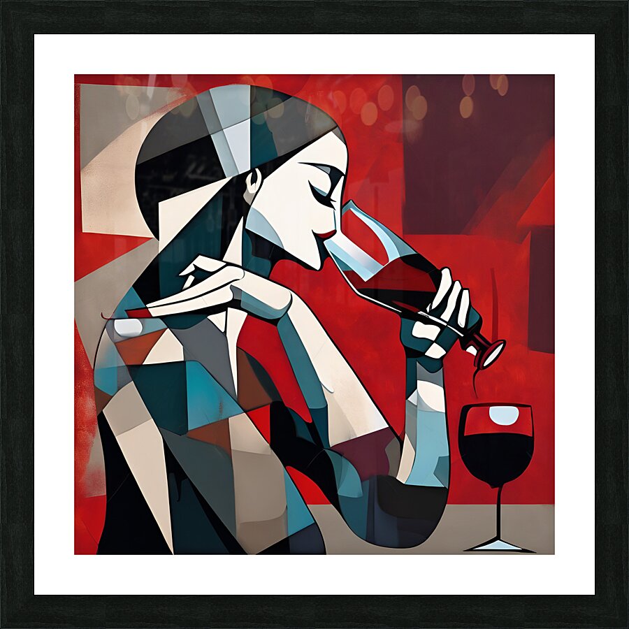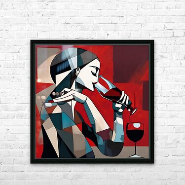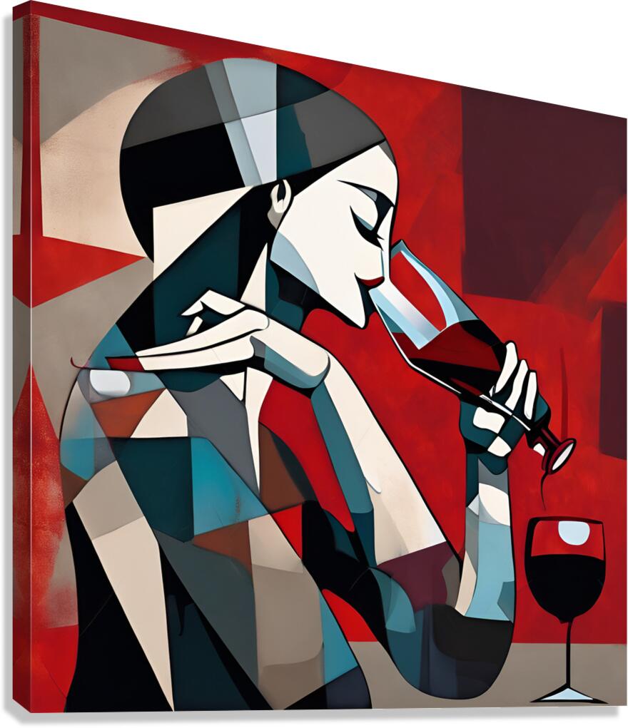 cubism art of the profile of an abstract woman drinking red wine, 3d render, painting, ukiyo-e, dark fantasy, graffiti, illustration, fashion