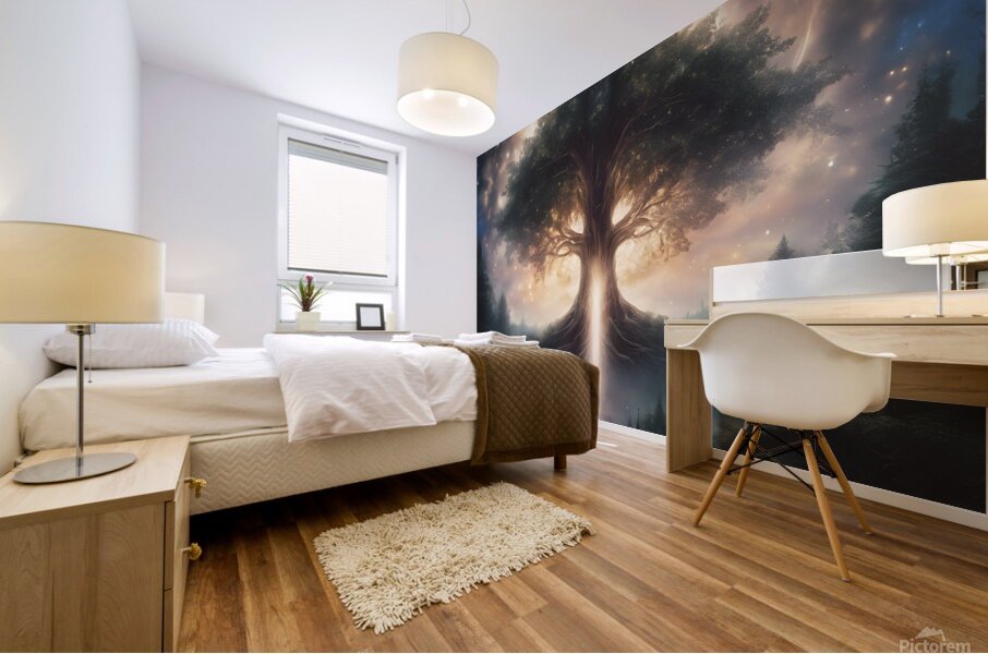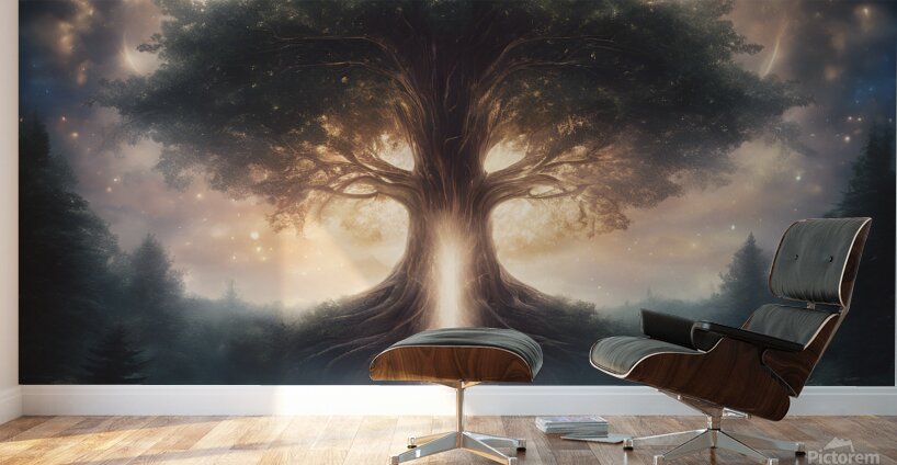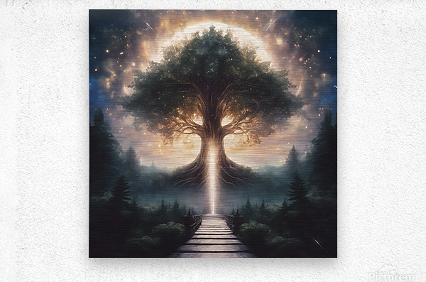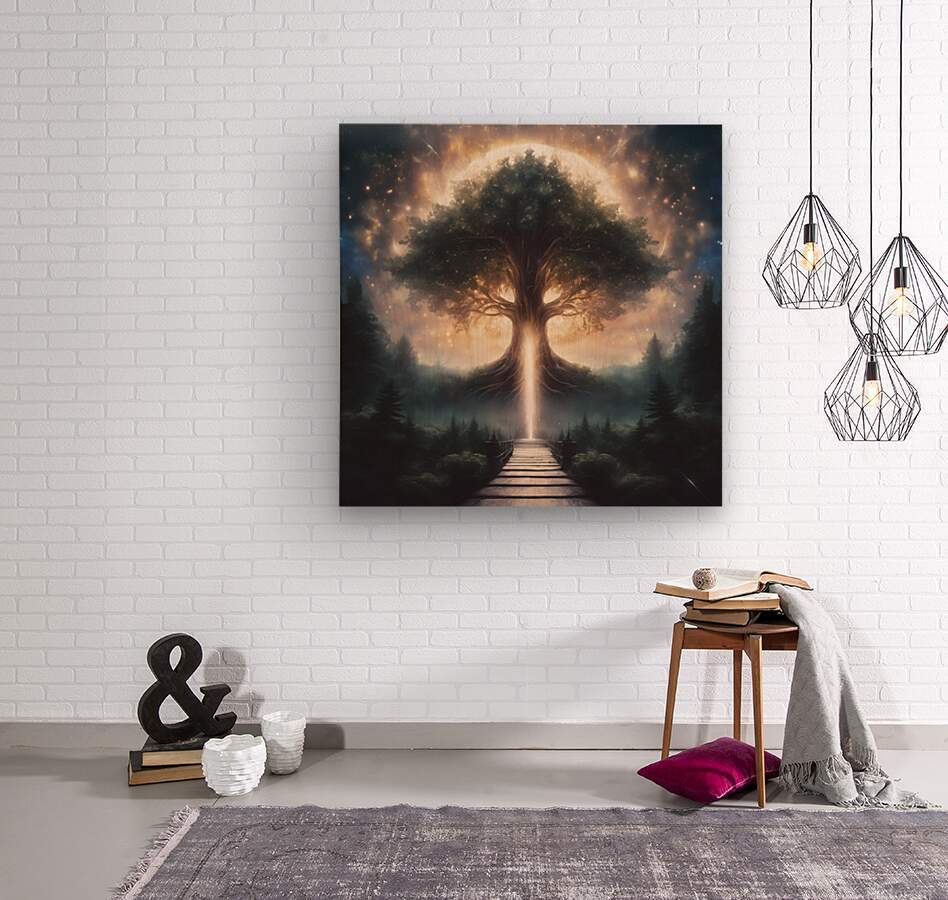 0 A throne of trees a bright glowing crown of lig  Wood print