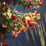 SALMON BOUGAINVILLEA IN SUNLIGHT LANDSCAPE