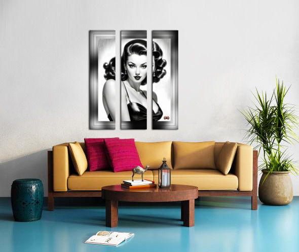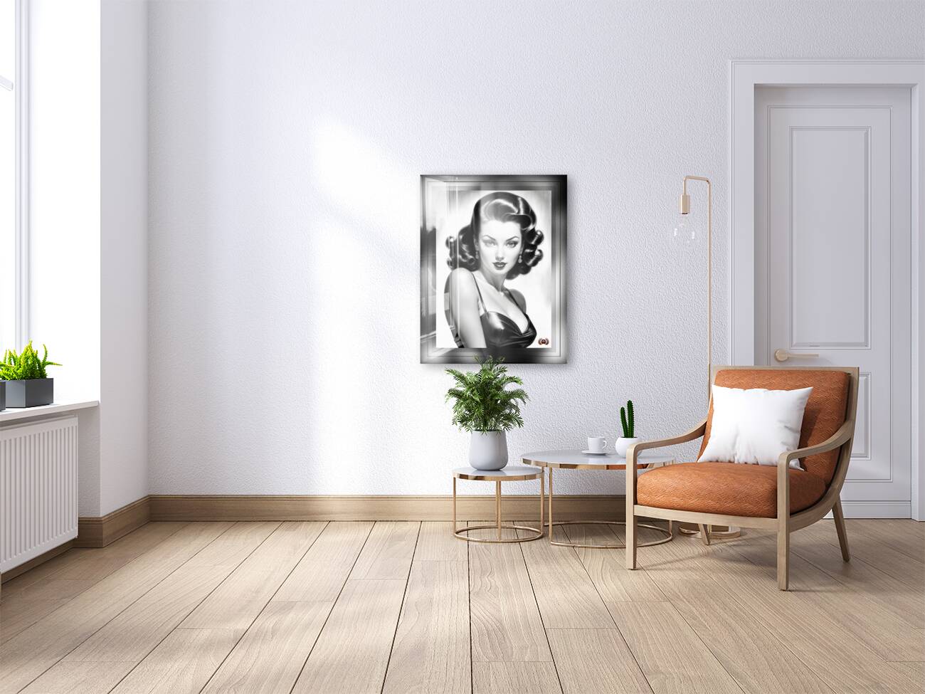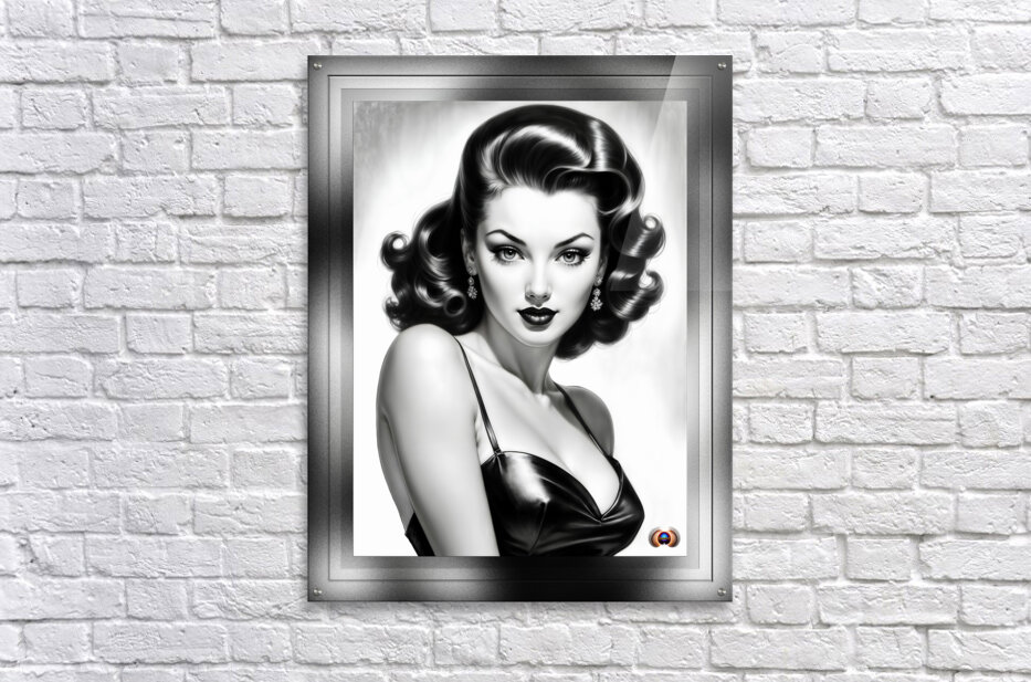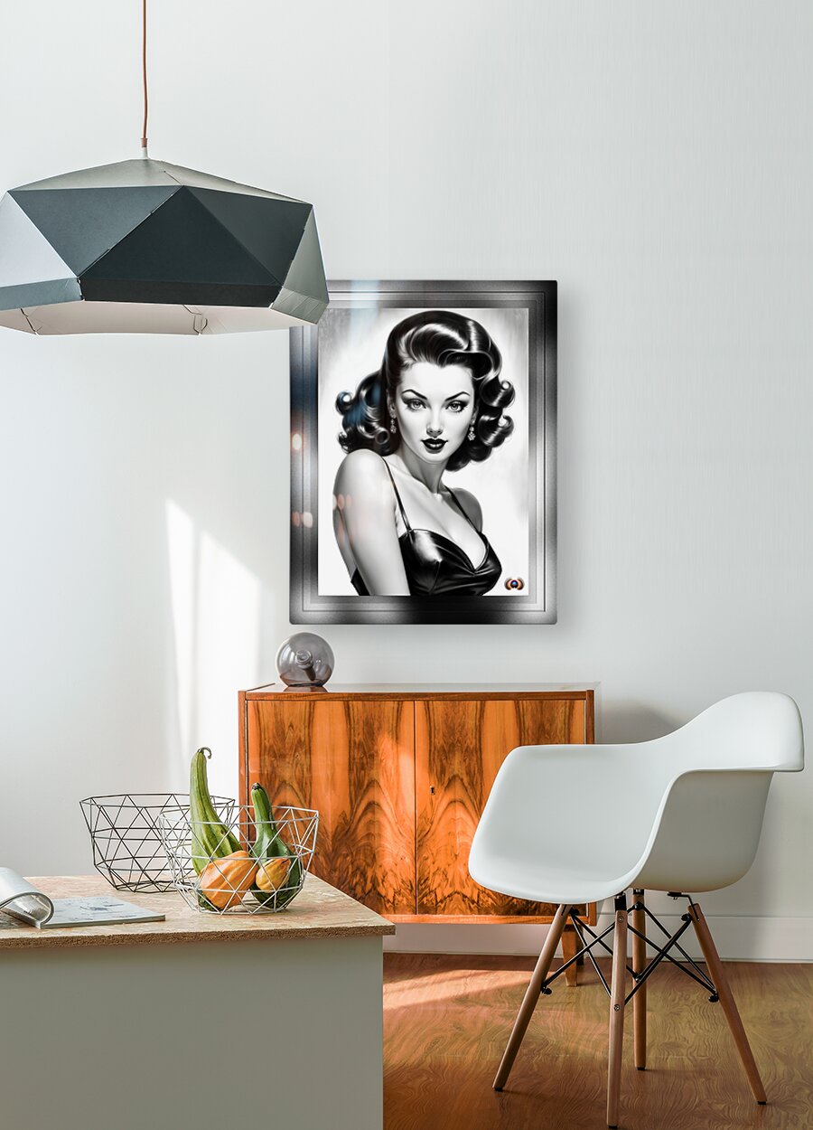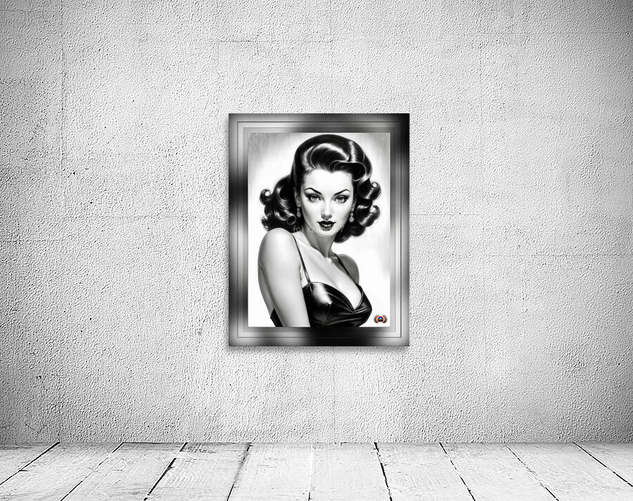 The Stunning Alicia Amia Gorgeous AI Concept Art Illustration Pin Up Girl Portrait by Xzendor7 Wall Decor Frame