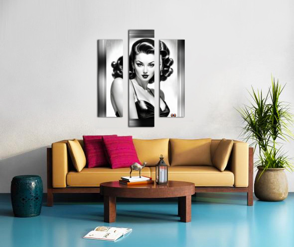 The Stunning Alicia Amia Gorgeous AI Concept Art Illustration Pin Up Girl Portrait by Xzendor7 Canvas print