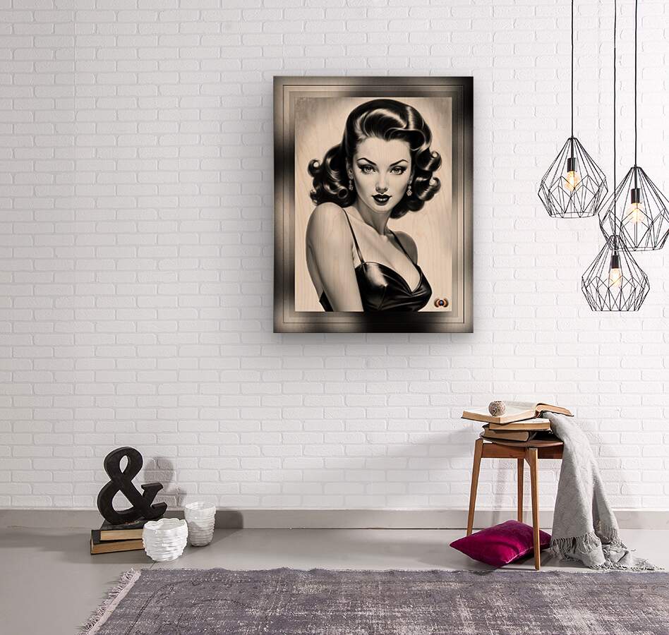 The Stunning Alicia Amia Gorgeous AI Concept Art Illustration Pin Up Girl Portrait by Xzendor7  Wood print