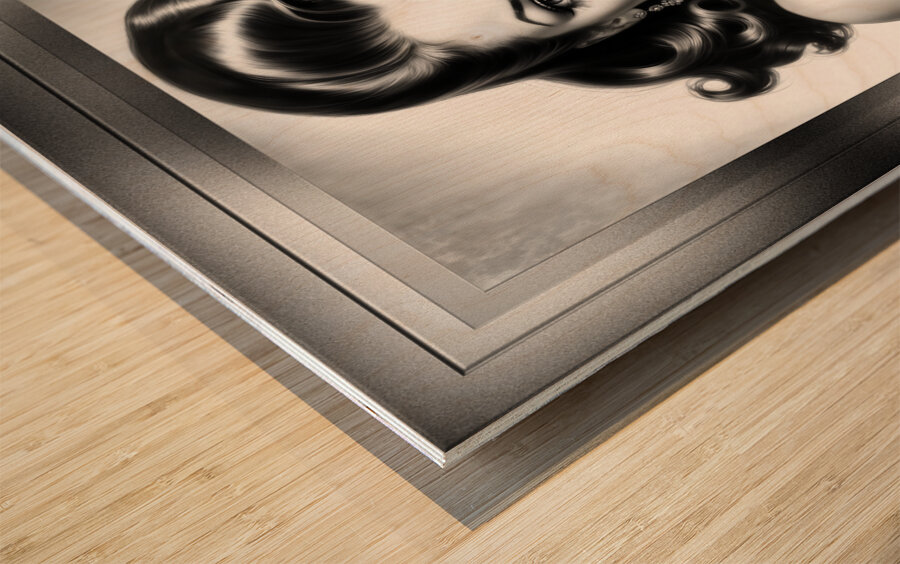 The Stunning Alicia Amia Gorgeous AI Concept Art Illustration Pin Up Girl Portrait by Xzendor7 Wood print