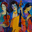 Three musicians, immersed in their art, are depicted in a symphony of vivid colors and abstract shapes. The leftmost plays a violin, her figure awash ...[+]