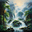 Immerse yourself in the grandeur of a cascading waterfall surrounded by a lush green forest, its mist creating a rainbow in the sunlight