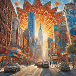 At its center, a radiant sunburst symbolizes hope and unity, radiating warmth and energy throughout the composition. Surrounding it, scenes of diverse...[+]