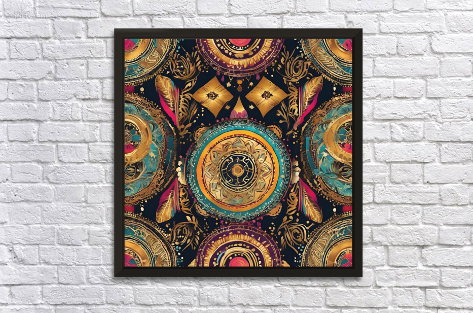 169666 pattern  boho colorful  some gold amazing Wall Decor Frame