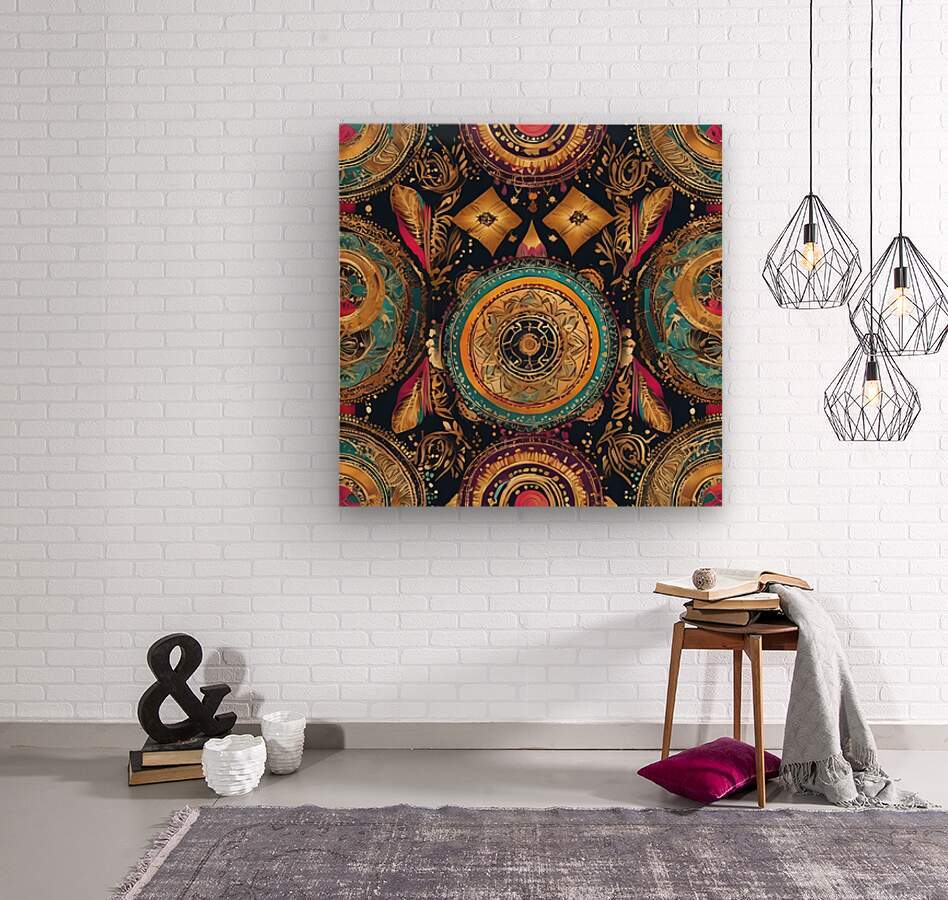 169666 pattern  boho colorful  some gold amazing Wood print
