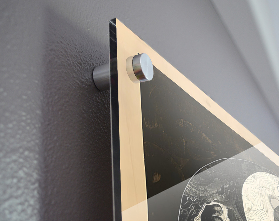 Printed to the edge - Ready to hang - provided with 4 premium polished aluminum stand off ( wall screws and mounting hardware provided )