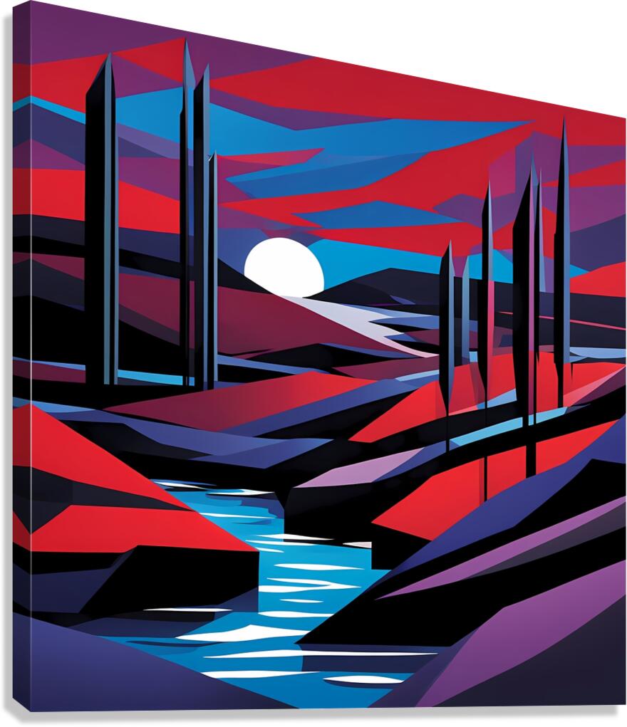 An exploration of the abstract and the concrete, portraying a dusk landscape with geometric shapes and colors. The Blue Mountains, Ontario.