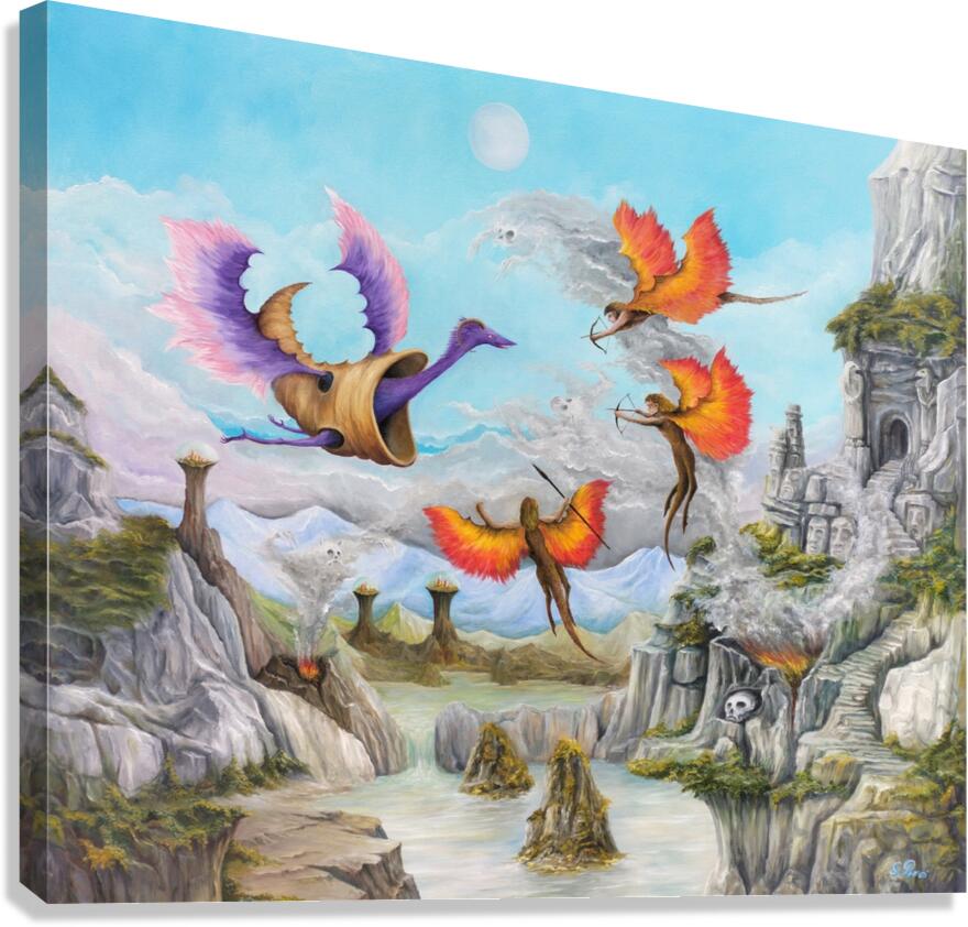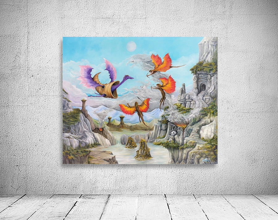 In this artwork by Gregory Pyra Piro, viewers are transported to a fantastical realm filled with eerie beings. Ghostly demons emerge from the clouds, ...[+]