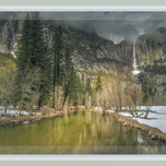 Spectacular views in the Yosemite Valley is the Tunnel View of Tunnel View and Bridal Veil Falls captured after a snow in mid-March. This is one of the views Ansel Adams made famous in his epic photographs. This same view is waiting for you to pace on your wall in more modern format. This landscape view is self three way framed which makes it appear framed even on metal or acrylic prints,