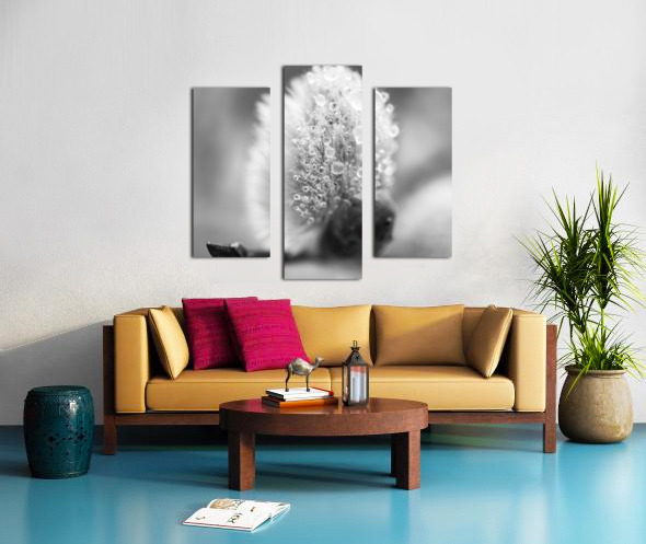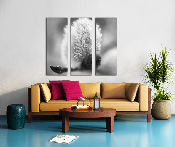 Pussy WIllow Flower With Droplets B&W Canvas print