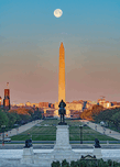 Full moon decending over the National Mall and Washington Monument.