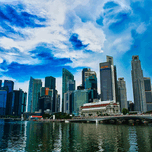 Captured from the waterfront of Marina Bay in Singapore, this photograph showcase one of Asia's most iconic skylines - a fusion of architectural innovation and natural beauty. The reflection of the city in the calm bay and the vivid play of tropical clouds above create a scene of blanace between human design and nature's canvas. This piece embodies the pulse of modern Asia - ambition, precision, and serenity in one frame.