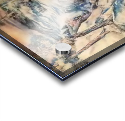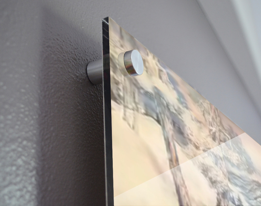 Impression sur acrylique avec entretoises ( cylindres métalliques )