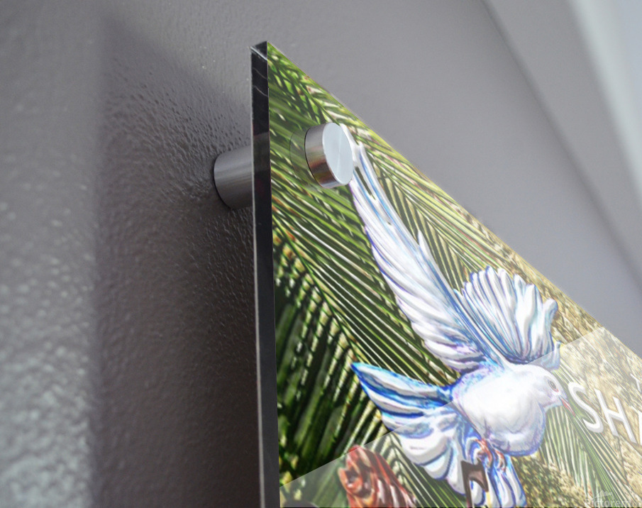 Impression sur acrylique avec entretoises ( cylindres métalliques )