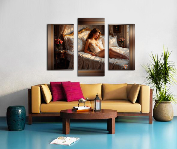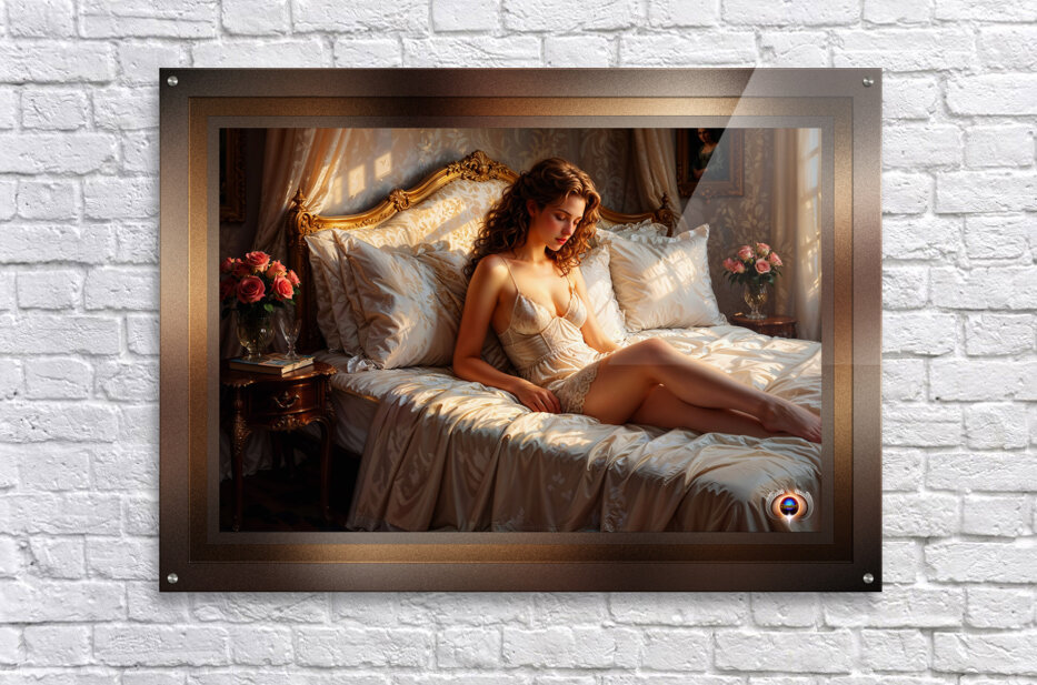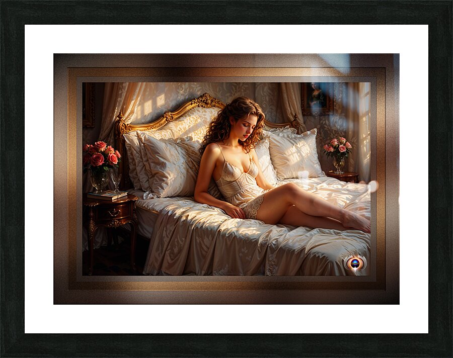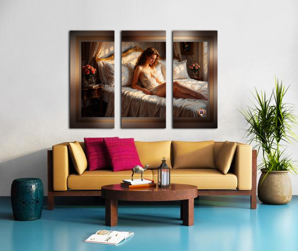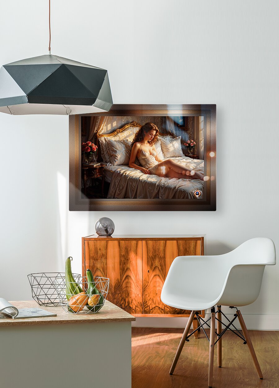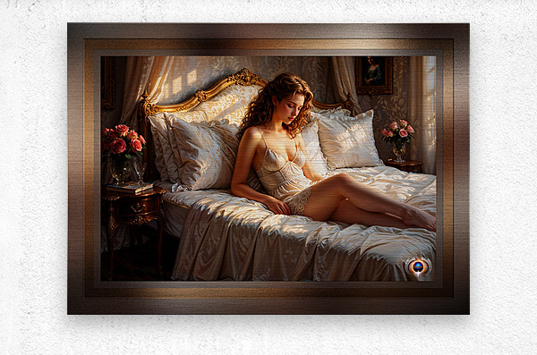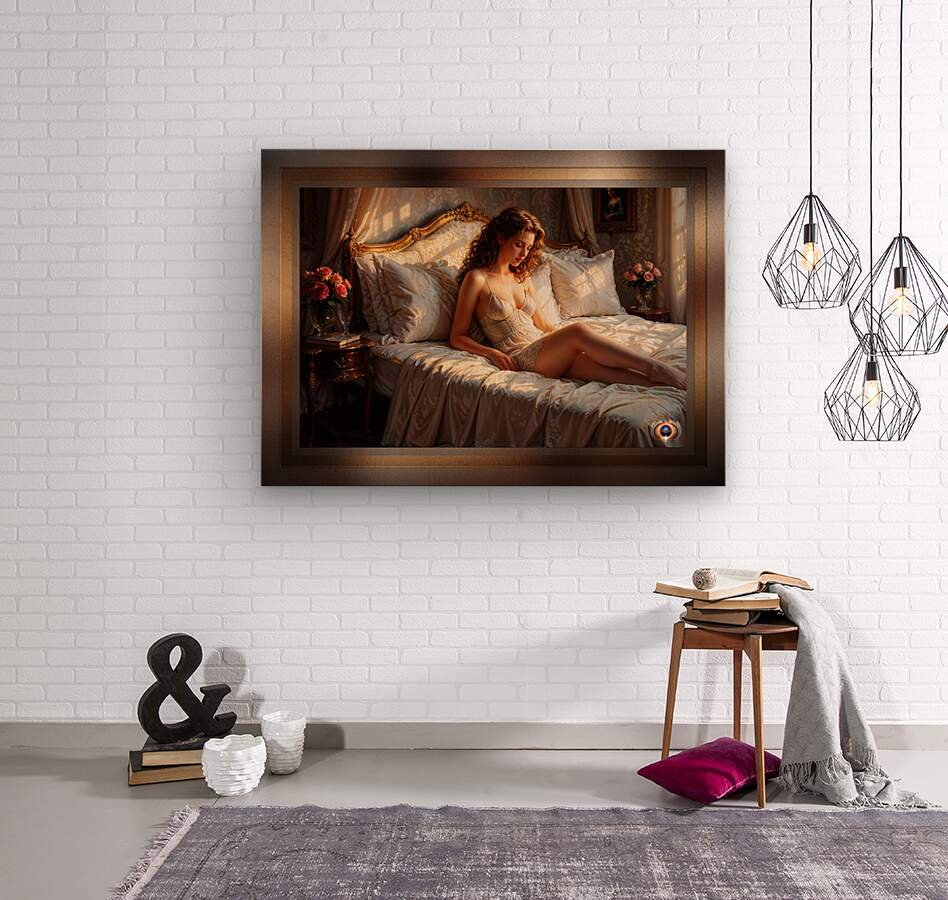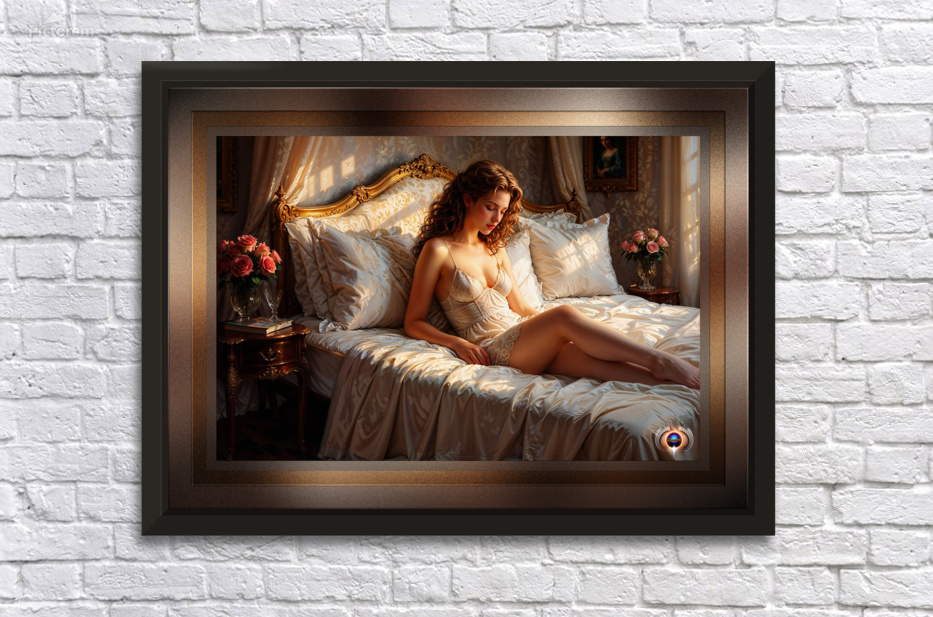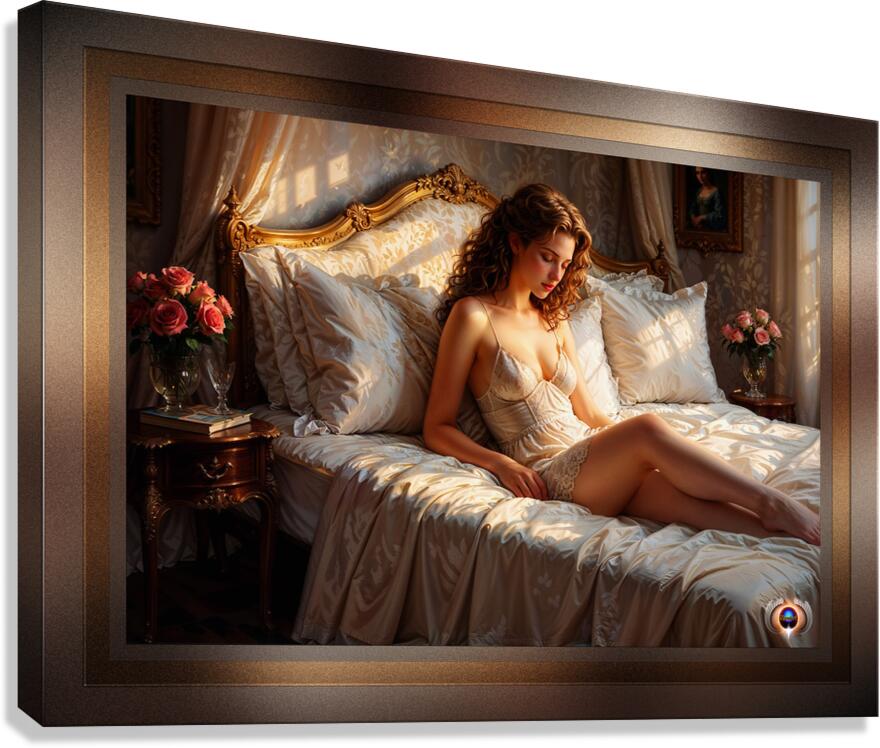 ROMANTIC VICTORIAN BEDROOM SCENE WITH ELEGANT WOMAN IN LINGERIE MESMERIZING AI CONCEPT ART BY XZENDOR7 XZENDOR7  Impression sur toile