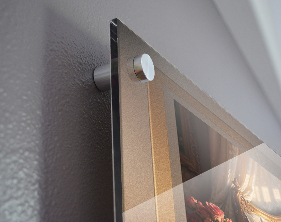 Impression sur acrylique avec entretoises ( cylindres métalliques )
