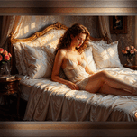 SUR CETTE OEUVRE: ROMANTIC VICTORIAN BEDROOM SCENE WITH ELEGANT WOMAN IN LINGERIE MESMERIZING AI CONCEPT ART BY XZENDOR7
