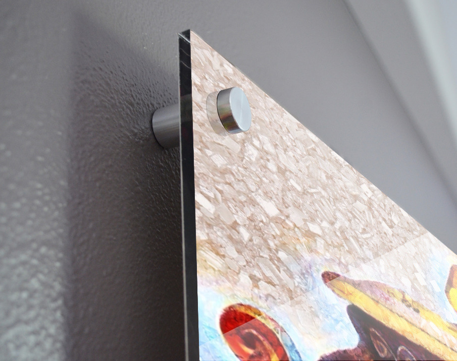 Impression sur acrylique avec entretoises ( cylindres métalliques )