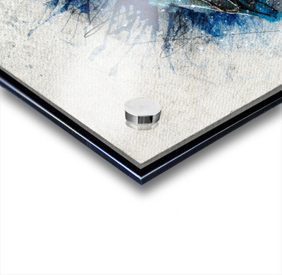 Impression sur acrylique avec entretoises ( cylindres métalliques )