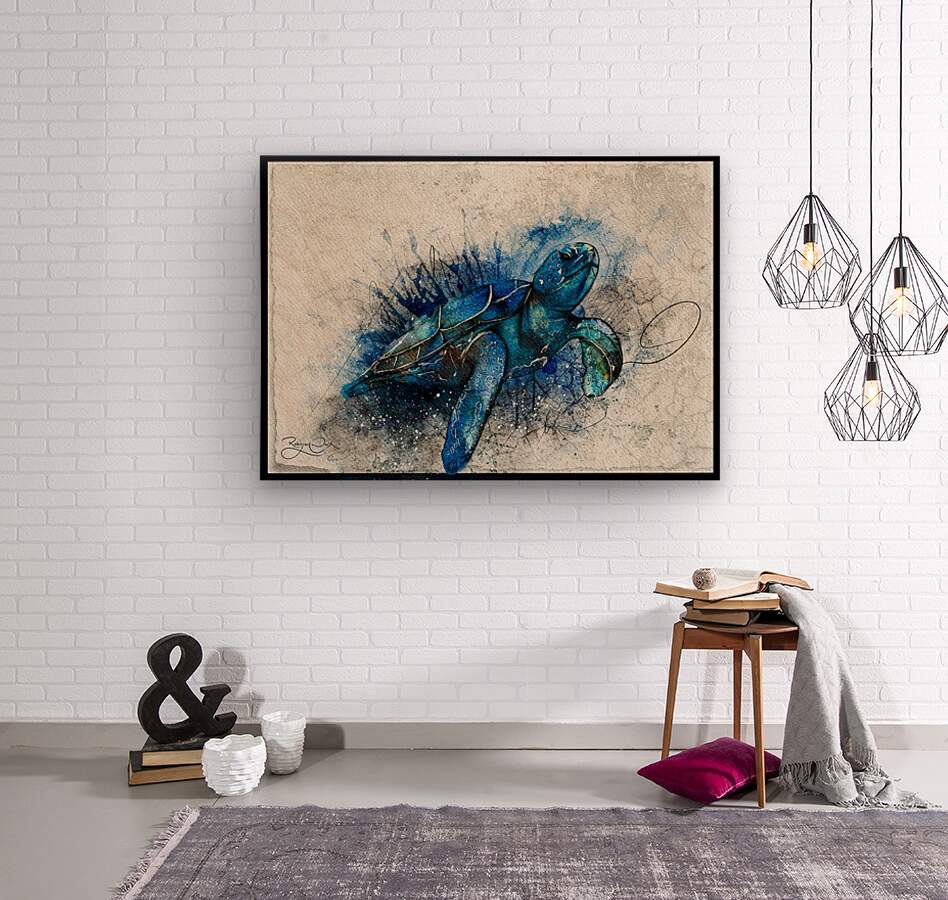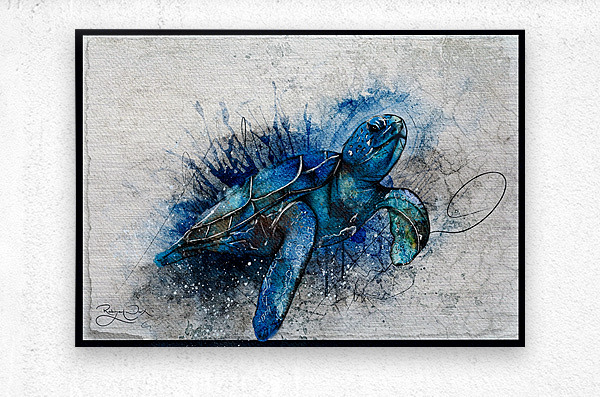Turtle Me Blue  Impression métal HD avec cadre flottant sur le dos
